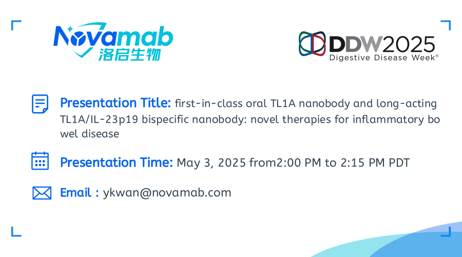凯发K8天生赢家一触即发生物将携口服TL1A纳米抗体及长效TL1A双特异性抗体出席DDW 2025会议